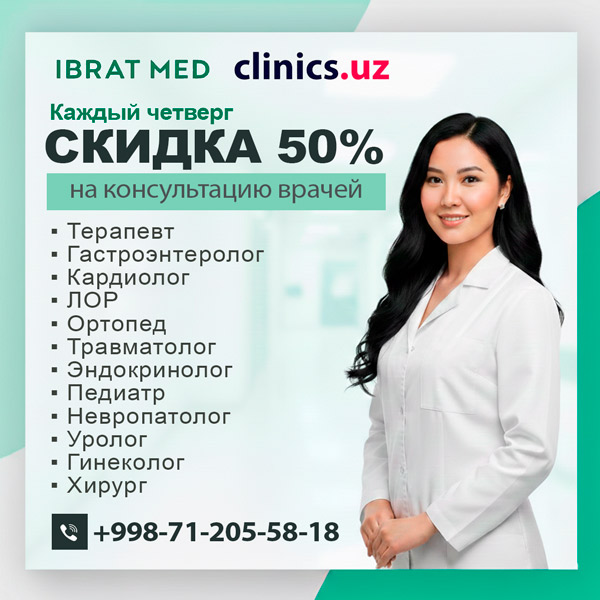 СКИДКА 50% на консультации врачей — каждый четверг в клинике Ibrat Med
