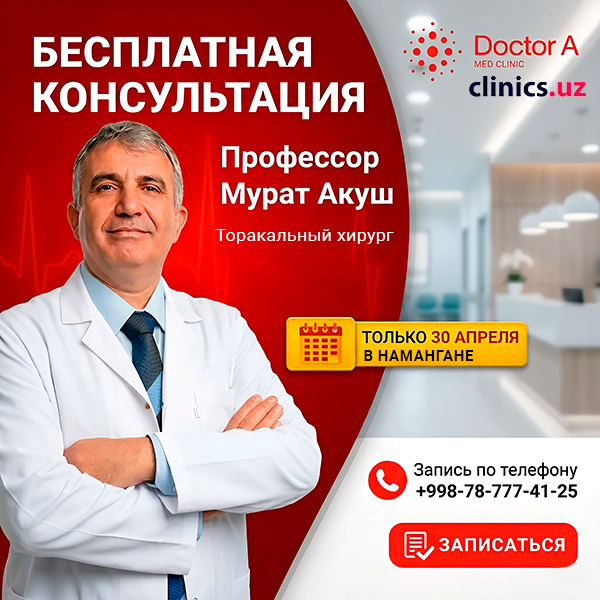 В Намангане состоится редкое медицинское событие! 30 апреля в клинике Doctor A Clinic ведёт приём один из ведущих торакальных хирургов Турции — профессор Мурат Акуш.
