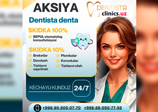 BEPUL stomatolog konsultatsiyasi va barcha xizmatlarga 10% skidka Dentista Denta klinikasida!