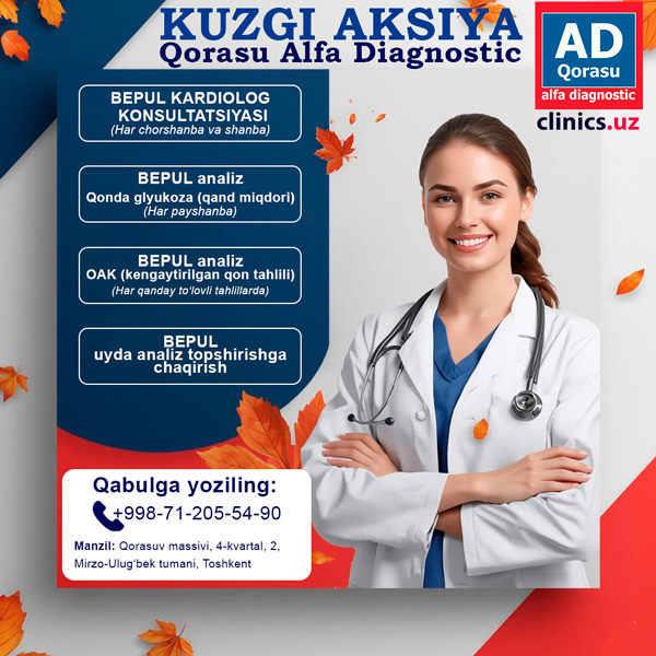 BEPUL (har qanday to‘lovli tahlil topshirganda)