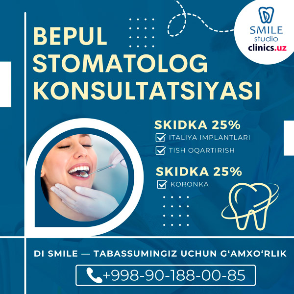 ✅ Tish va milklaringiz holatini bilib olasiz, mutaxassis tavsiyalari va davolash rejasini olasiz — hech qanday xarajatsiz.