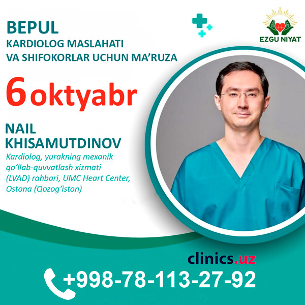 6 oktyabr soat 09:00 dan – Surunkali yurak yetishmovchiligi (SYE) tashxisi qo‘yilgan, yurak uzoq vaqt davomida qonni samarali hayday olmaydigan holatdagi bemorlar uchun bepul tibbiy maslahatlar